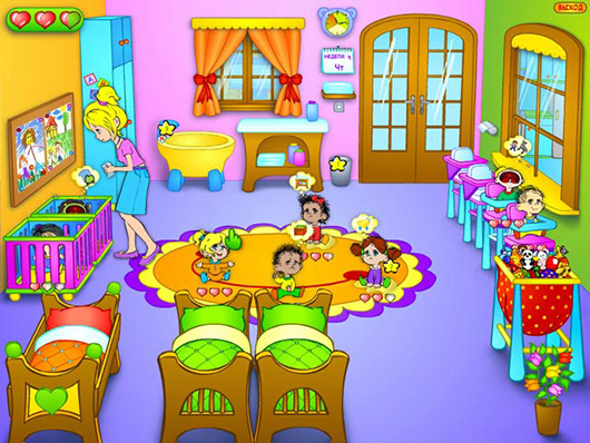 Забавная аркада, в которой вы будете помогать воспитательнице Миле ухаживать за маленькими ребятишками. Каждый день в детском садике творится страшная суматоха. Одного карапуза пора кормить, другому менять подгузник, а остальные требуют играть, причем немедленно! Главное - не сбиться с ног в этой кутерьме и постоянно следить, чтобы ваши подопечные всегда были умыты, накормлены и довольны жизнью.